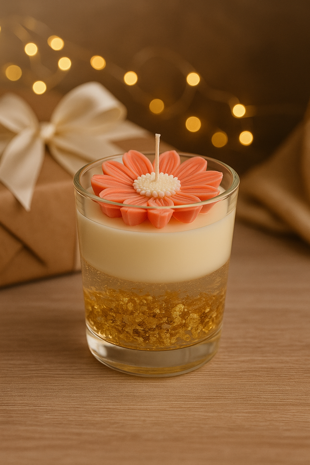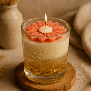 🌸 The charming flower top, rich creamy wax, and golden flakes bring elegance to your space.