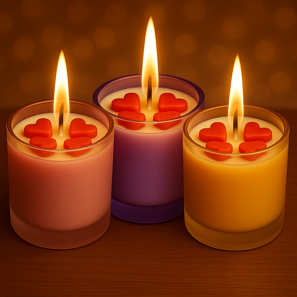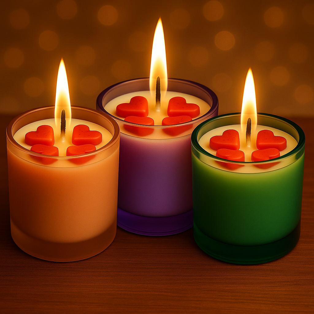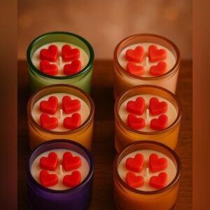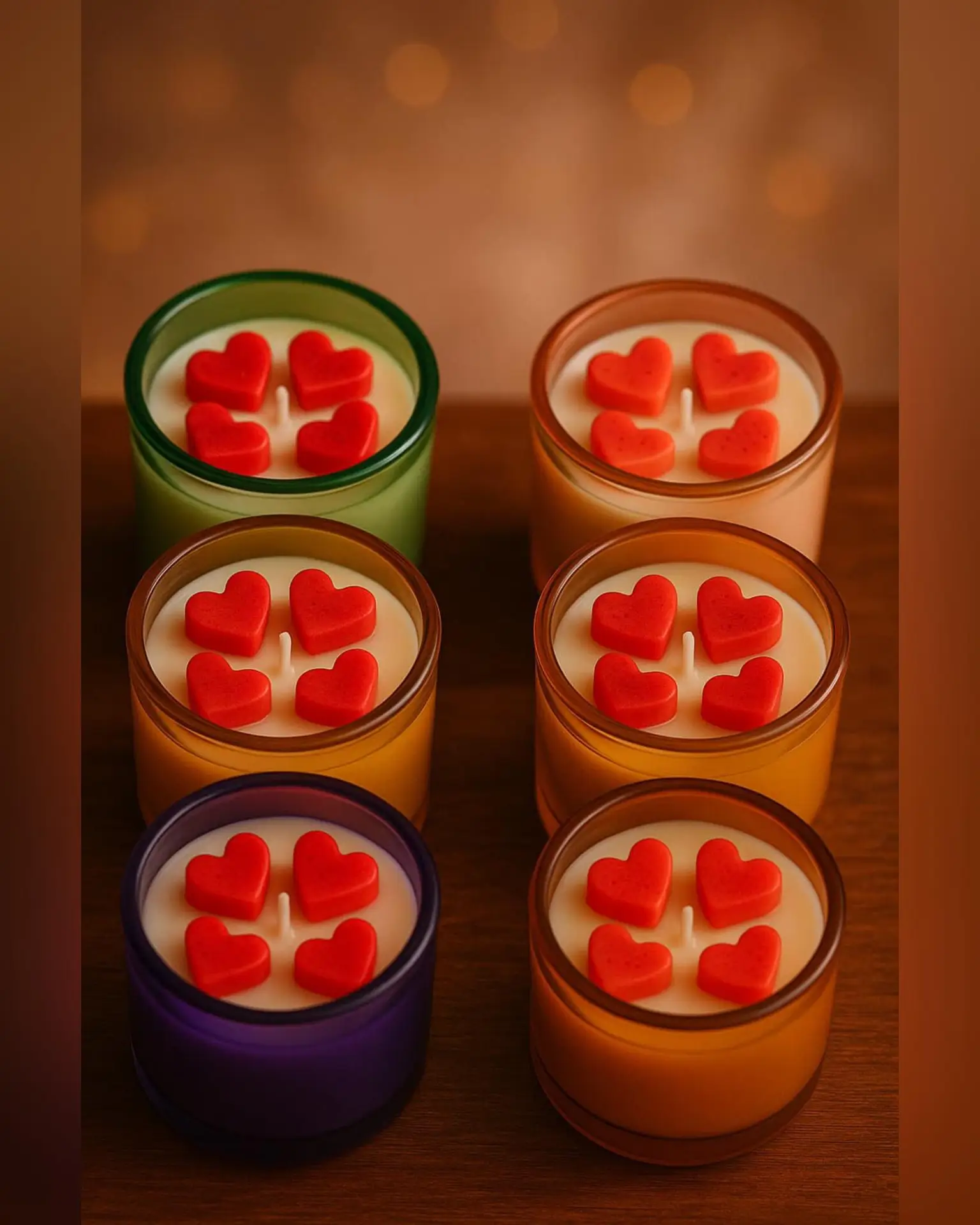 ight up your moments with HeartGlow Combo Sets – a lovely set of 3 candles in soft, beautiful colors, each topped with cute ❤️ heart melts.