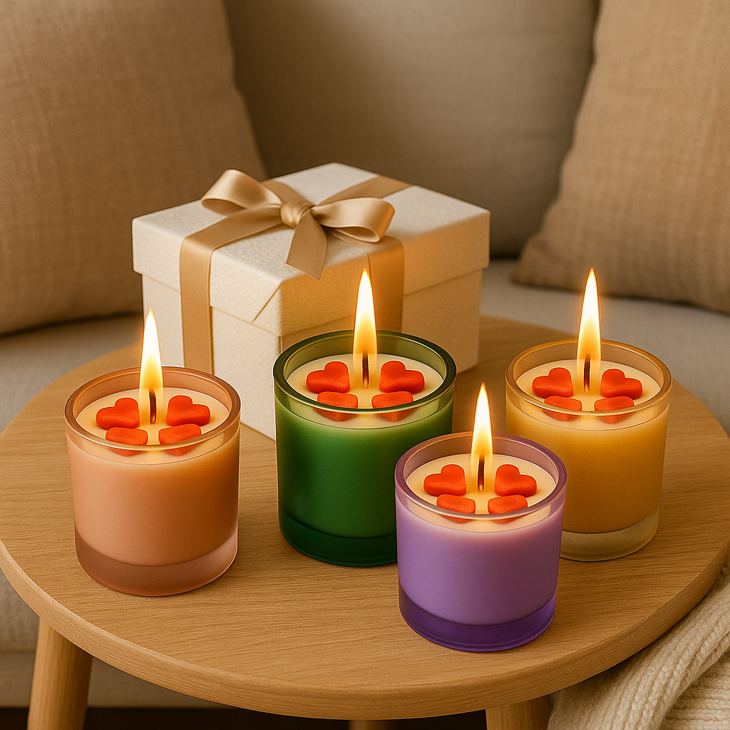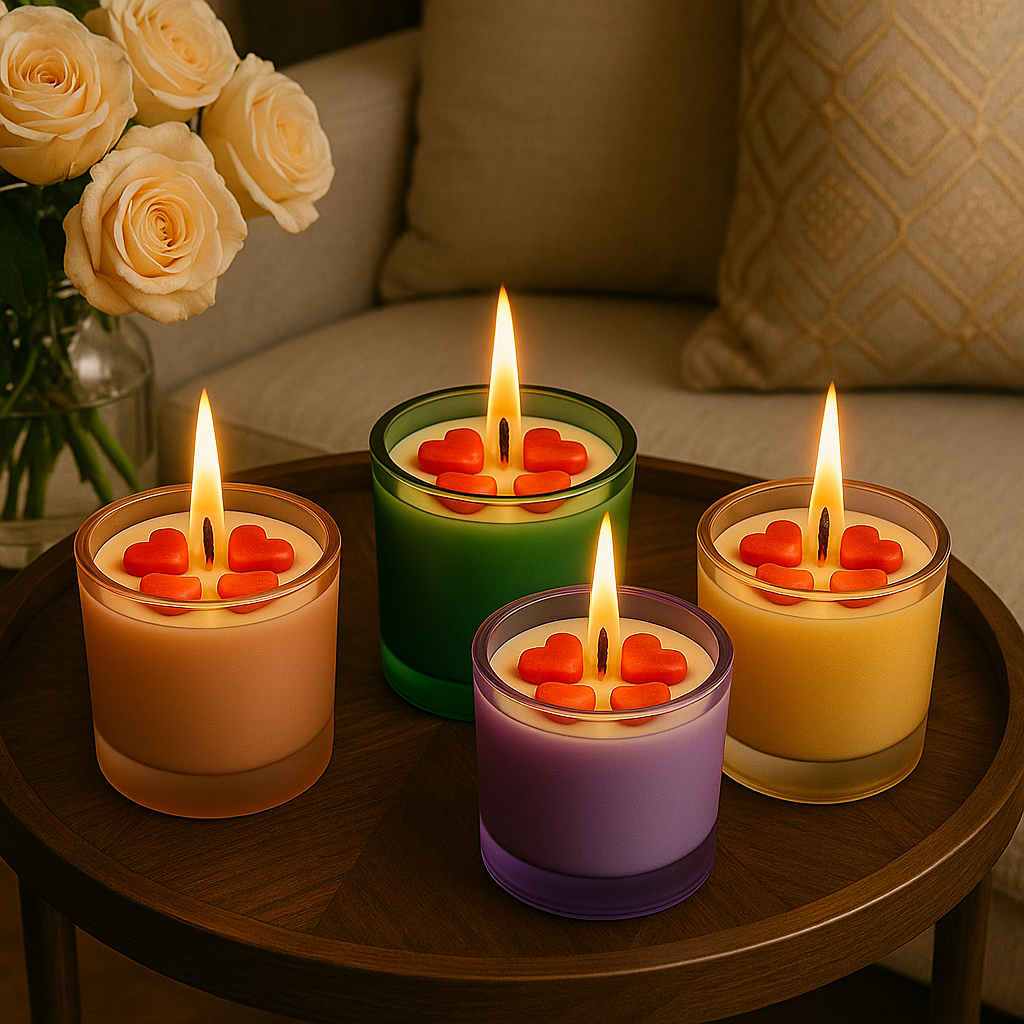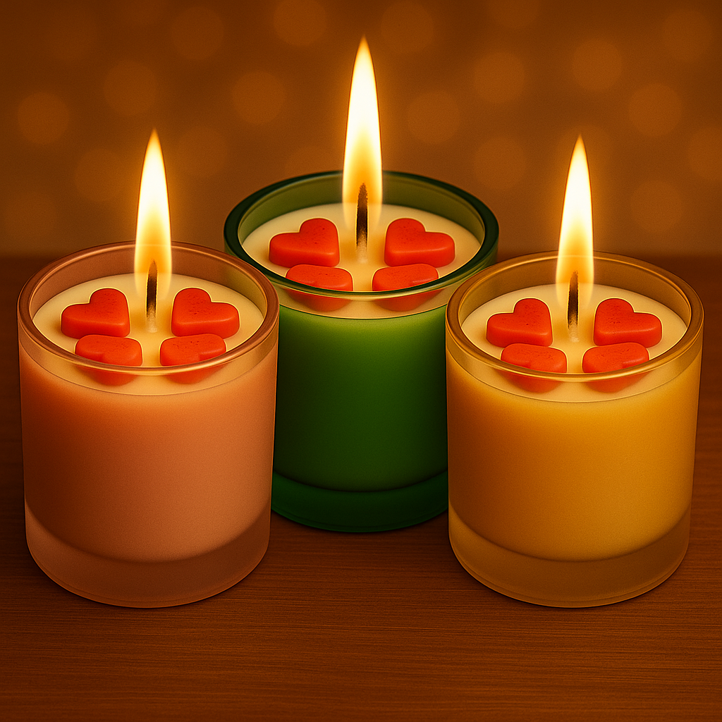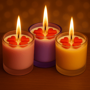 ight up your moments with HeartGlow Combo Sets – a lovely set of 3 candles in soft, beautiful colors, each topped with cute ❤️ heart melts.